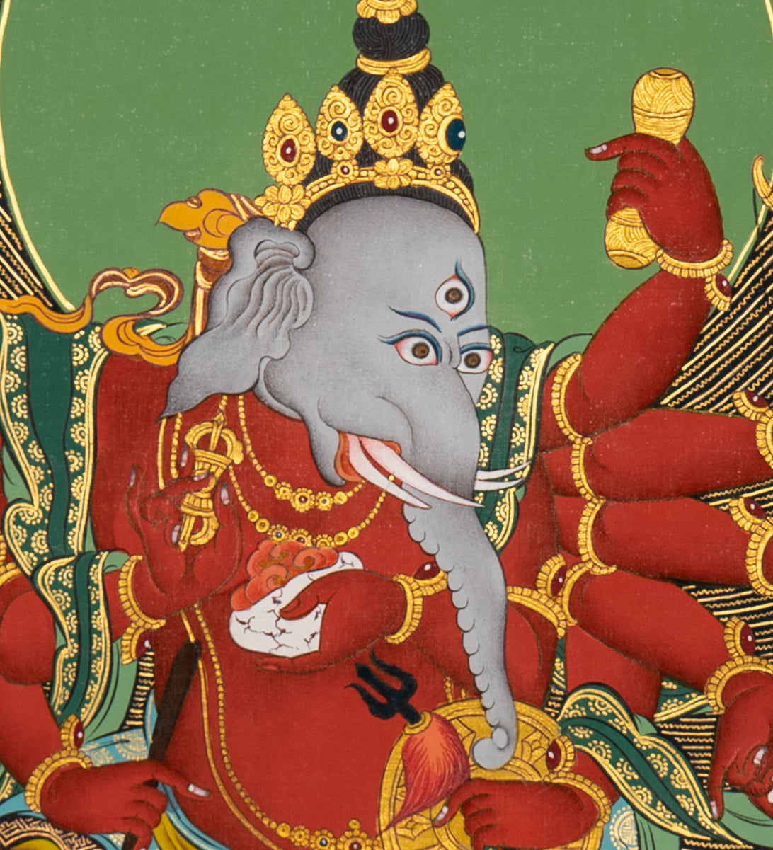 12 arm Ganesh Thangka  - Sacred Handpainted Art