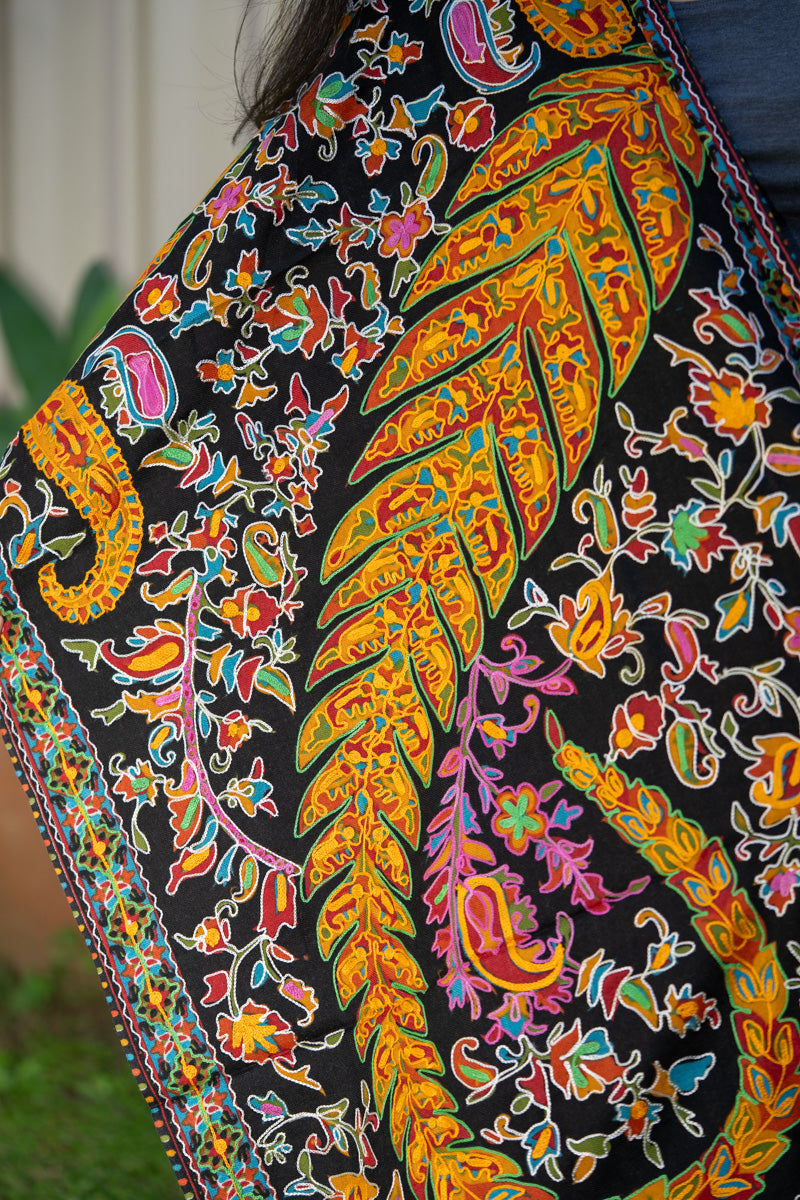 Heavy Embroidered Pashmina Shawl - Handwoven shawl