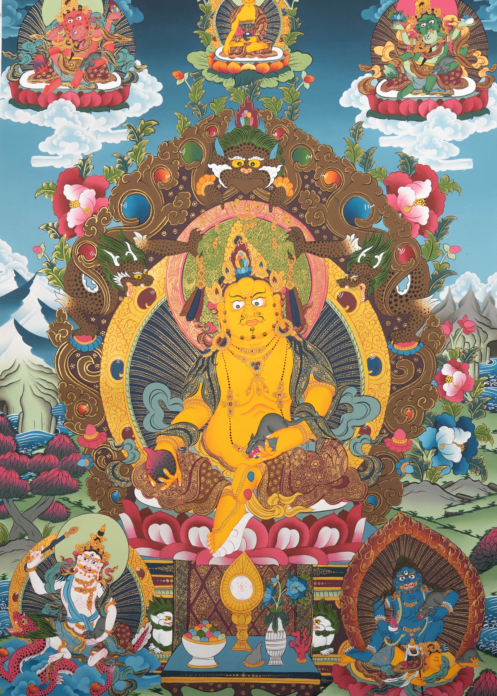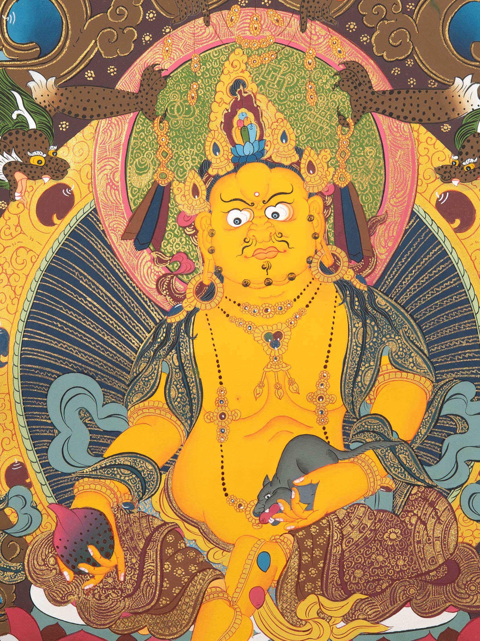 Handpainted Zambala Thangka Painting for wealth and prosperity.