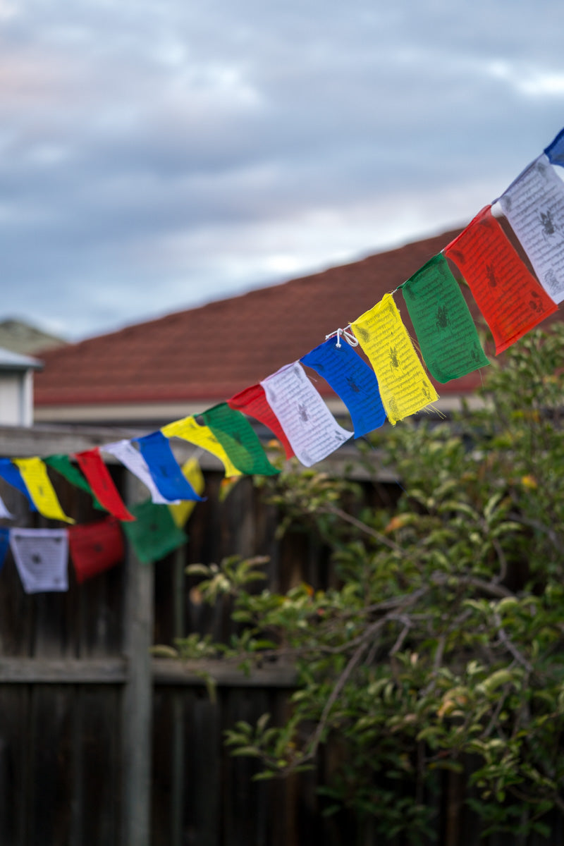 While not mandatory, it is recommended to hang prayer flags with a mindful intention or prayer. Many people hang them on auspicious days according to the Tibetan calendar or on a Full Moon Day to align with positive spiritual energy.