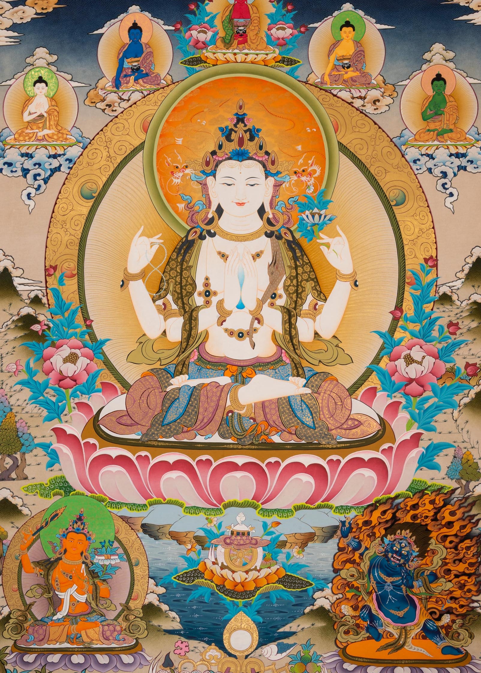 Chenrezig Thangka Painting - Sacred Handpainted Art